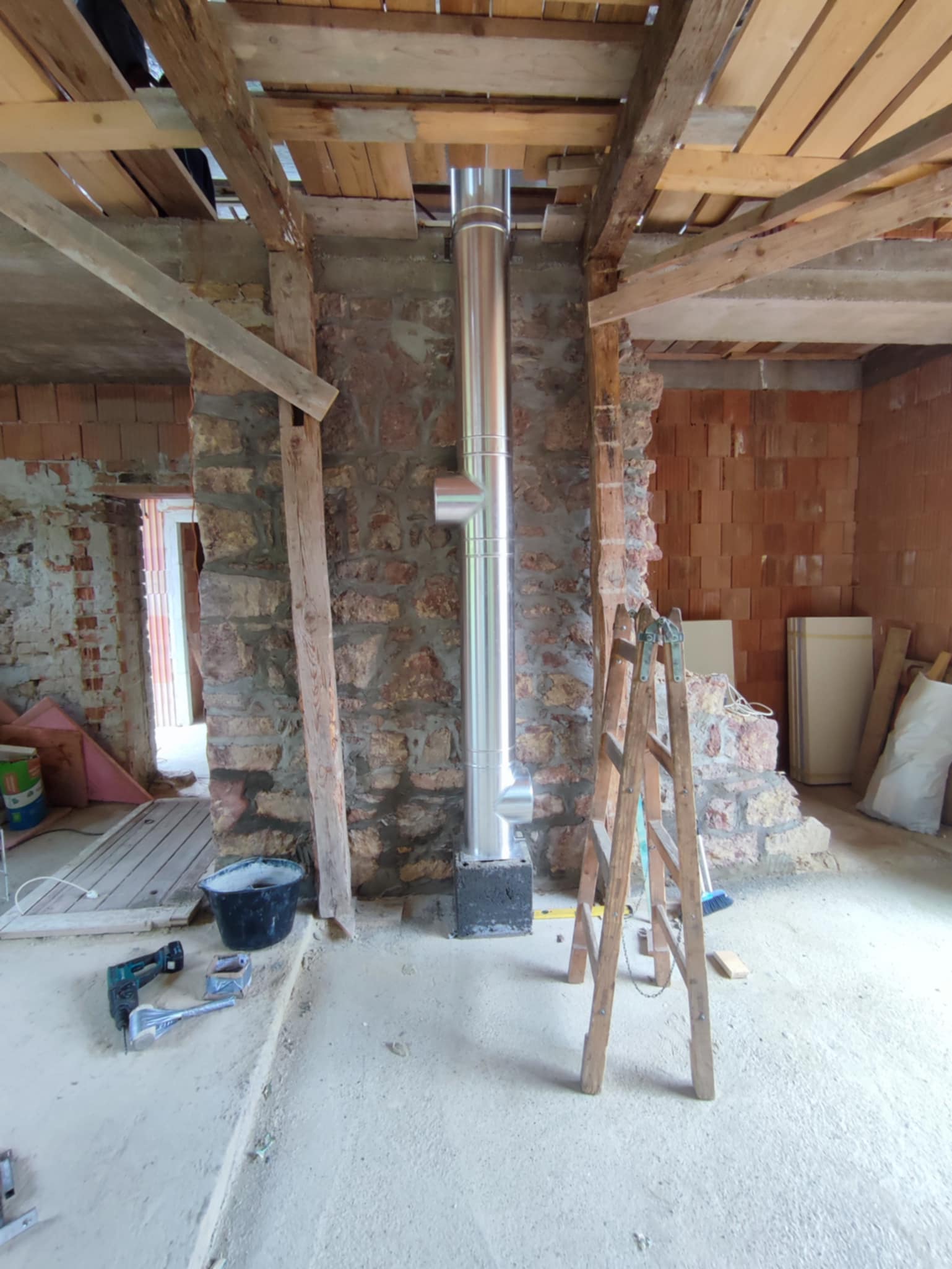 Fa és széntüzelésű berendezések égéstermék elvezetéseinek kialakítása, kéményeinek bélelése.